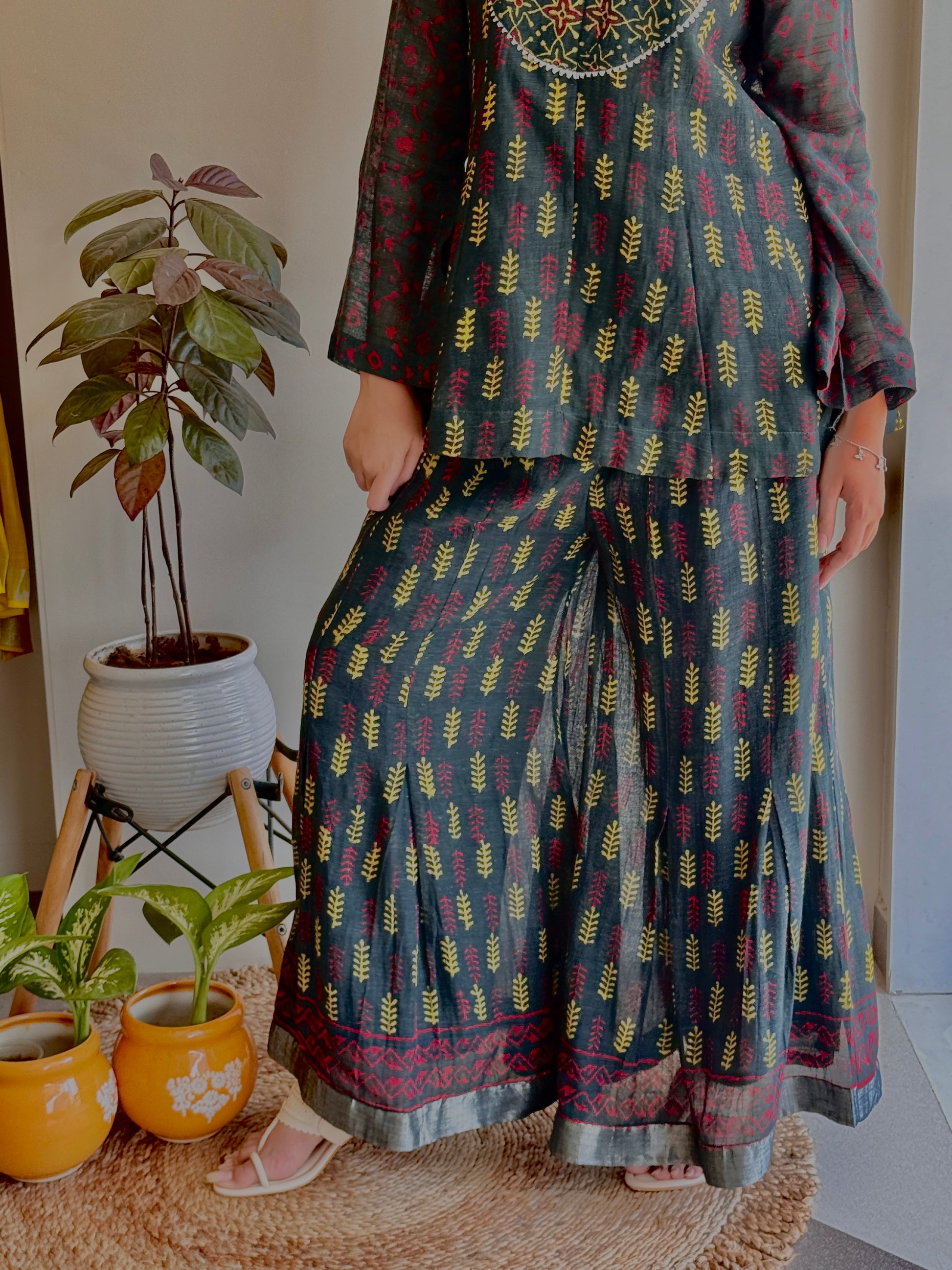Where timeless craft meets modern elegance—Aureya is crafted in pure linen and thoughtfully lined with soft mull cotton for comfort that lasts all day. The set features a flowing palazzo paired with a bell-sleeve top, creating a silhouette that is both graceful and contemporary.