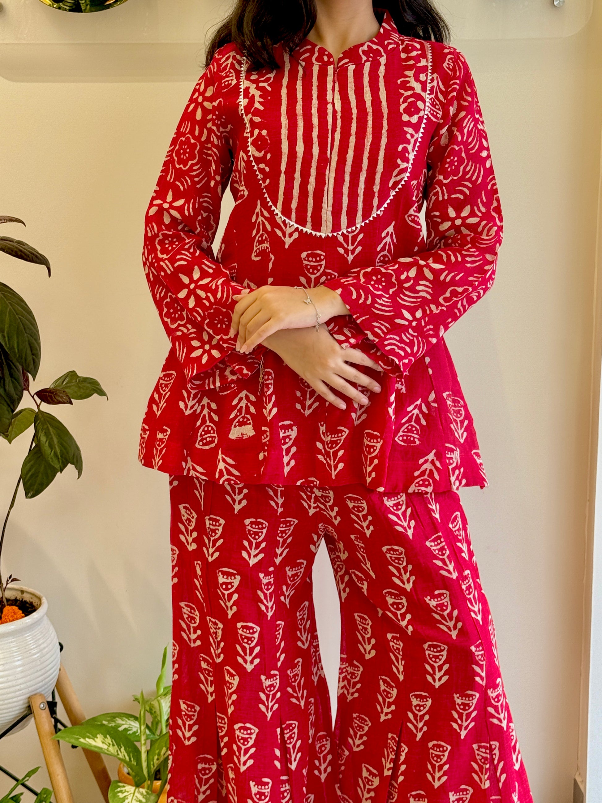 Step into effortless elegance with this Dark Orange Pure Linen Cord Set, beautifully crafted for comfort and style. Made from 100% pure linen, the set features full lining in both the top and bottom, offering a smooth and premium feel. Each piece is hand block printed by skilled Indian artisans, showcasing traditional craftsmanship with a modern touch. The deep dark orange shade adds warmth and sophistication, making it perfect for festive occasions, casual gatherings, or refined everyday wear.
