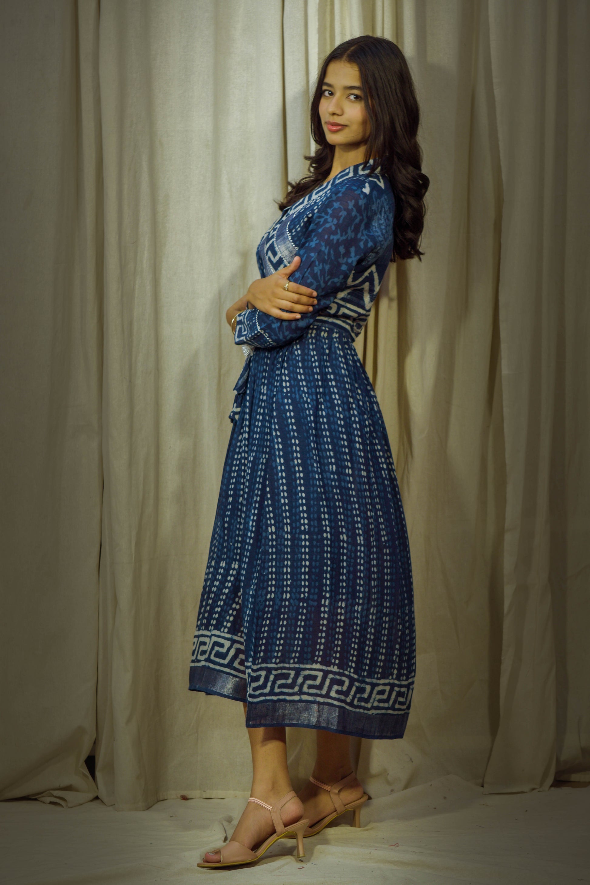 The deep indigo hue evokes serenity and depth, while subtle variations in tone add a hand-dyed charm that machine-made prints can never replicate. Whether you’re dressing for a sunlit brunch or a quiet evening gathering, this versatile shade elevates your look with understated luxury.