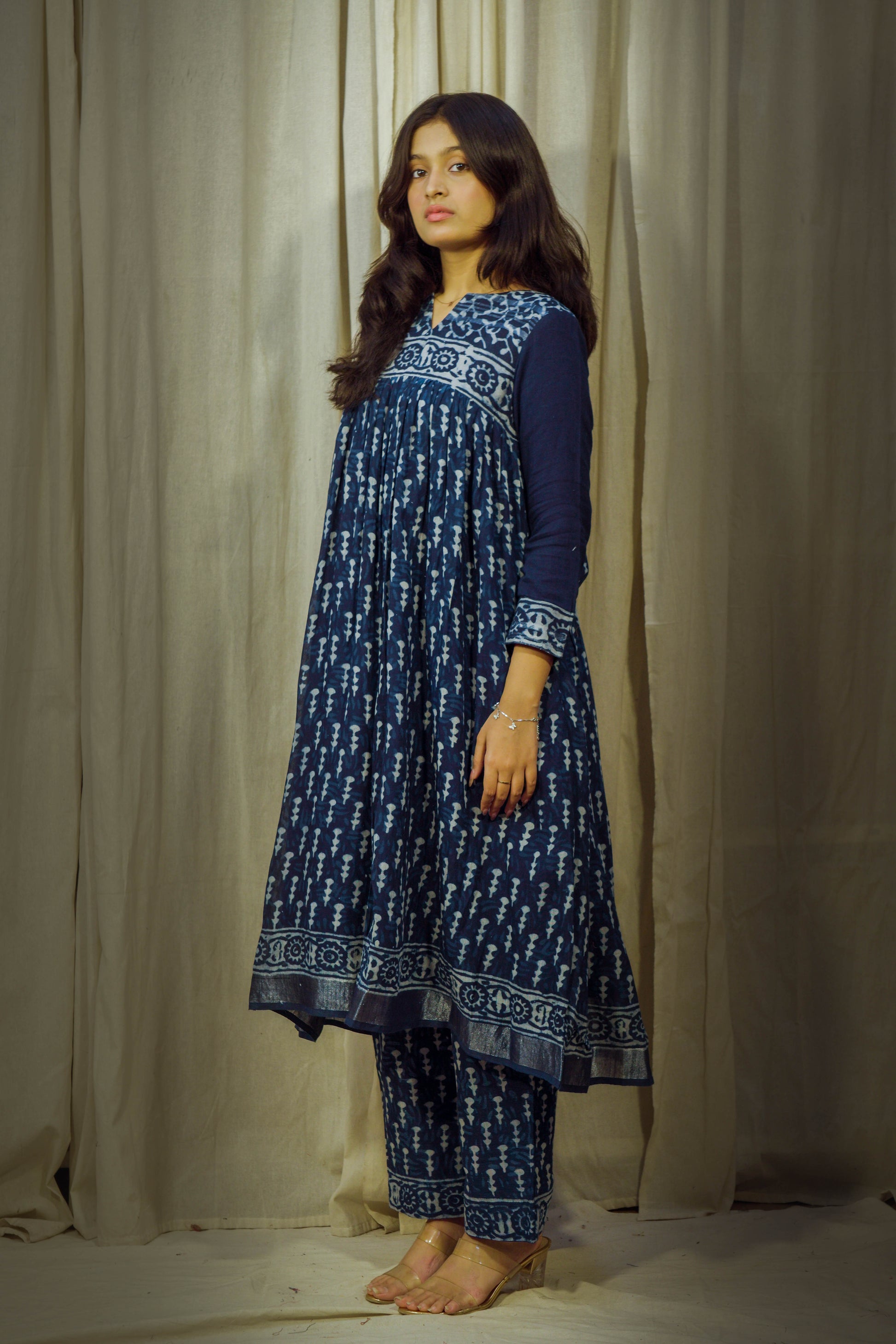 The matching pants echo the same handblock print and are also lined in mul cotton, ensuring movement without compromise. Whether worn as a coordinated set or styled separately, Neel Tara transitions effortlessly from day to evening, season to season.