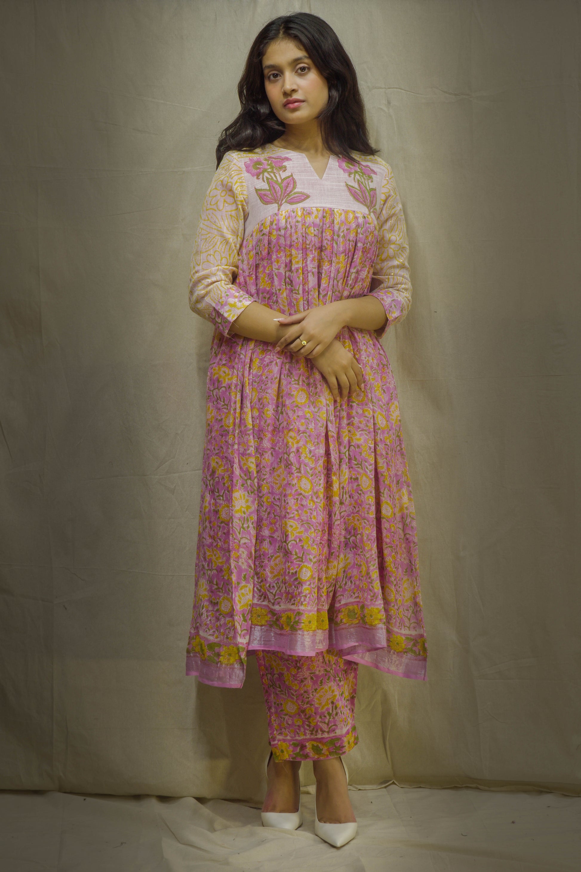 The kurta and pants are both lined with soft mull cotton, ensuring a luxurious feel and exceptional comfort throughout the day. Each piece is meticulously handblock printed by skilled artisans, showcasing intricate patterns that highlight traditional craftsmanship and add a touch of artisanal charm to your look.