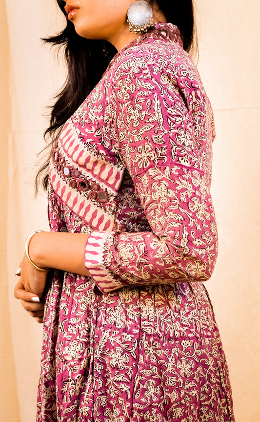 Irish Pink Kalamkari Mirror Work Two-piece set